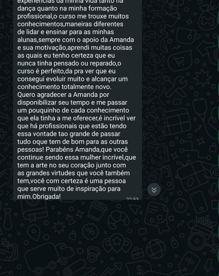 Sou Bailarina há mais de 23 anos e Professora de ballet há mais de 13 anos.